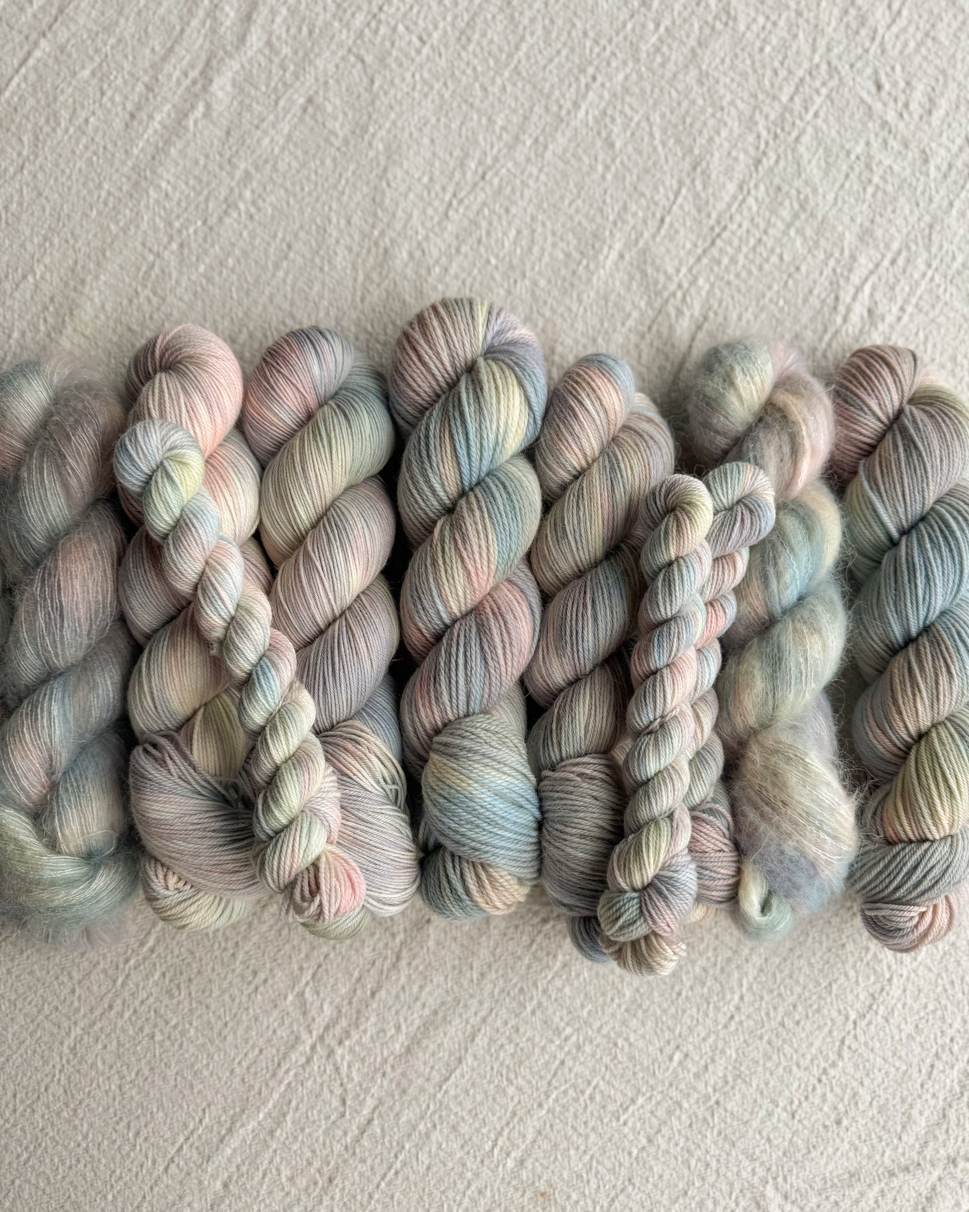 Each month we'll offer the next month's colourways available without a subscription; the "One Time" listing, as well as leftover in-stock yarn from months prior.